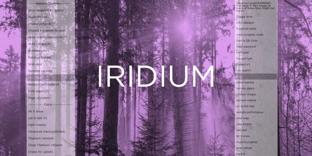 IRIDIUM is a javascript bookmarklet, it has many features to keep your sanity level at a normal state during school.